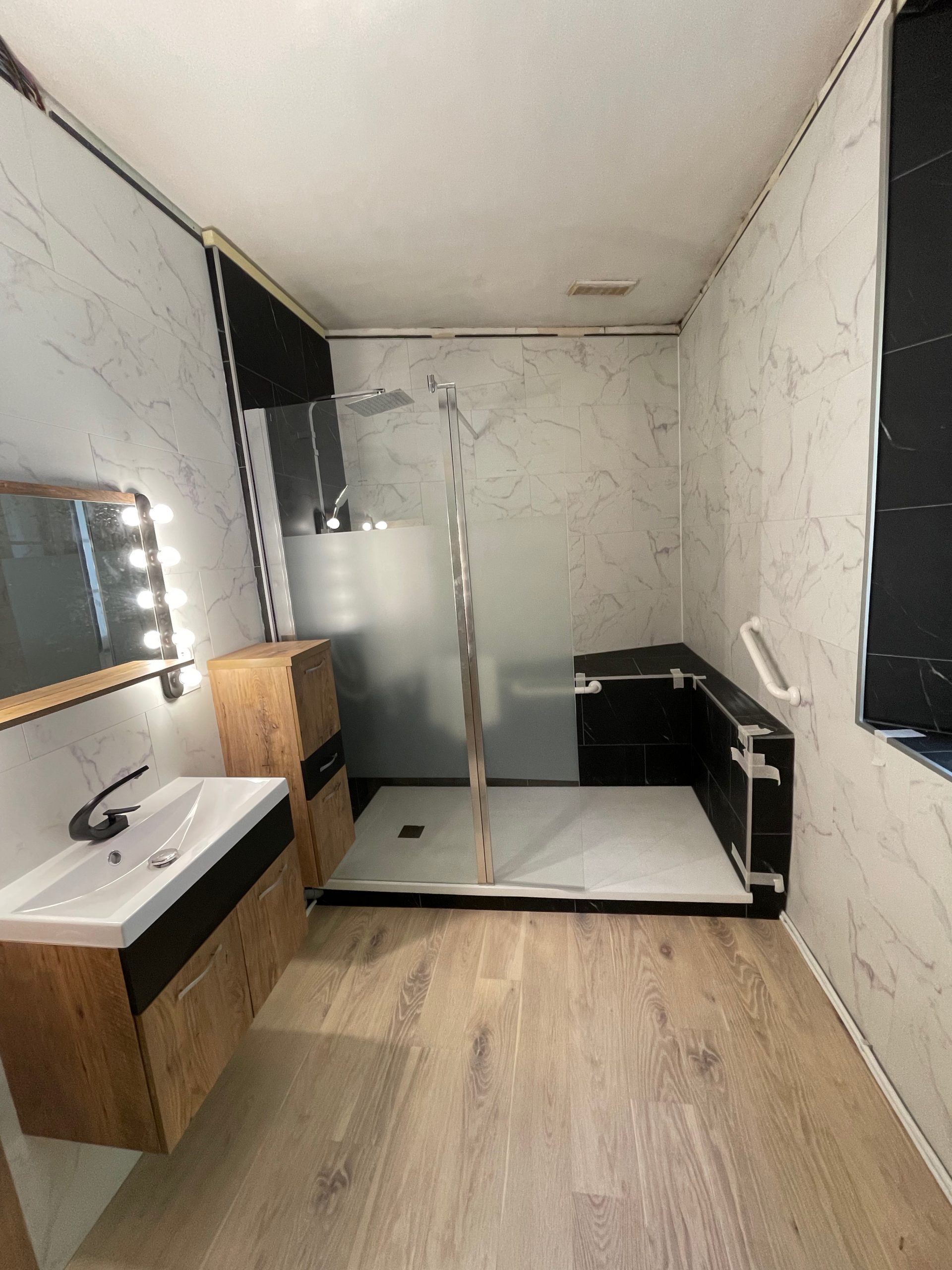 Les étapes de la réalisation Une nouvelle douche ?Votre projet en 5 étapes Rendez-vous personnalisé Cette étape est essentielle, elle nous permet de cerner vos besoins. Mesures et plan Notre technicien prend les mesures de votre salle de bain, évalue le travail et réalise le plan du projet Fabrication sur mesure Réalisation précise, sur mesure de vos équipements Pose rapide Nous intervenons le plus rapidement possibles pour minimiser les désagréments Contrôle qualité pour garantir votre satisfaction AVANT TRAVAUX APRÈS TRAVAUX AVANT TRAVAUX APRES TRAVAUX Contactez moi